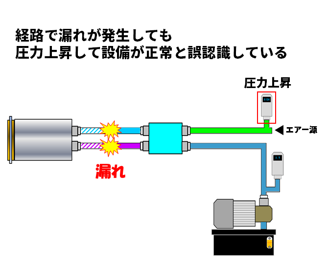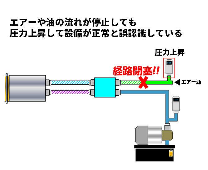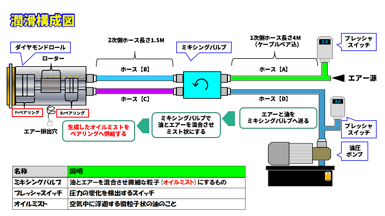 しかし、実際には潤滑の配管破損によりオイルミストが主軸に届いていなくても、圧力センサー側では正常であると判断されたまま継続的に使用されていました。